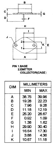 Features:(1)low collector-emitter saturation voltage; (2)Vce(sat)=4.0V(MAX) @ Ic = 30A, Ib=6.0A; (3)general purpose linear amplifiers; (4)series pass regulatorsand inductive switching.